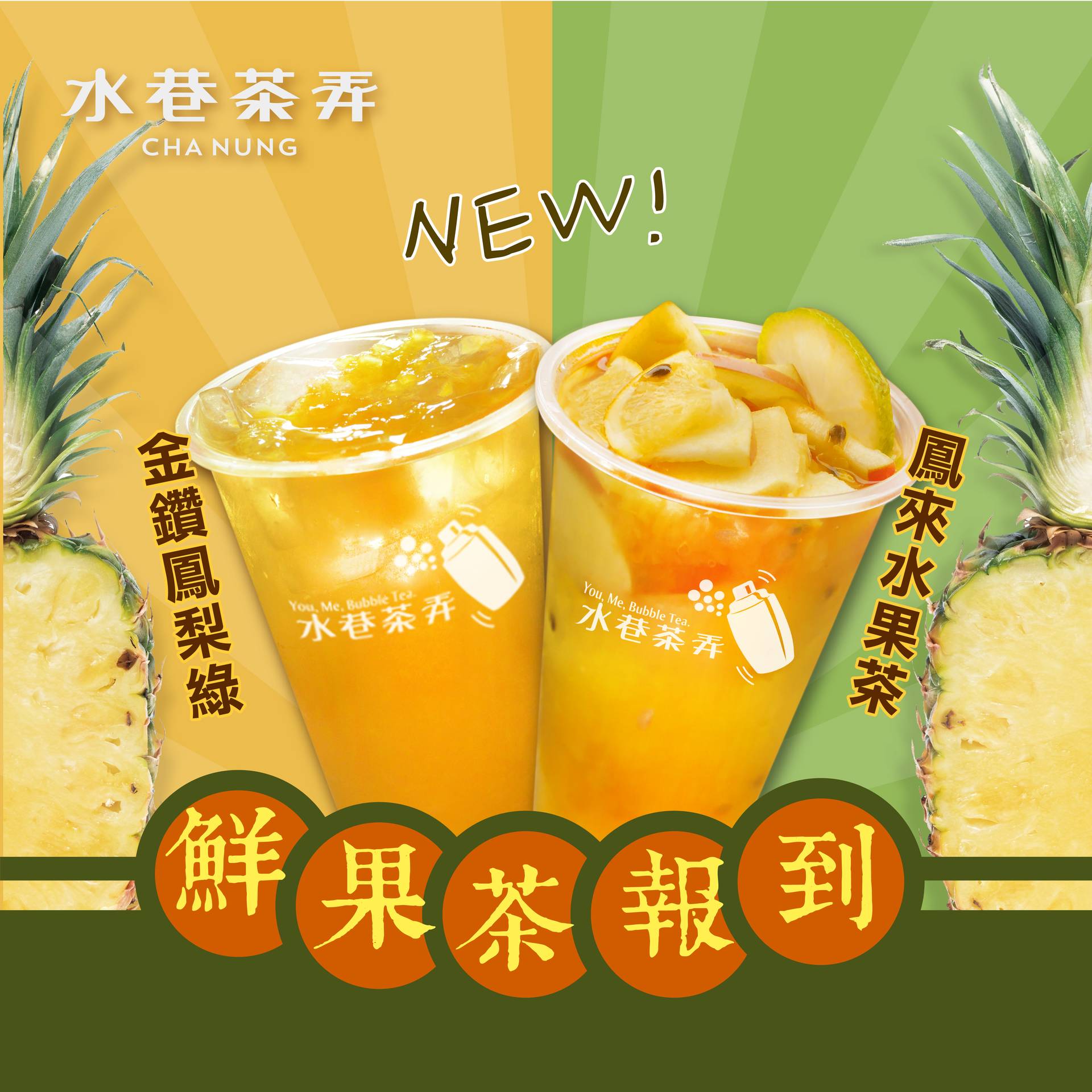 嚴選台灣金鑽鳳梨手工熬煮作為基底茶,搭配茉莉綠茶及新鮮百香、蘋果、柳丁切片,展現鳳梨及鮮果濃郁獨特香氣,每一口都喝得到纖果食感! 今年夏天首選就是它了。