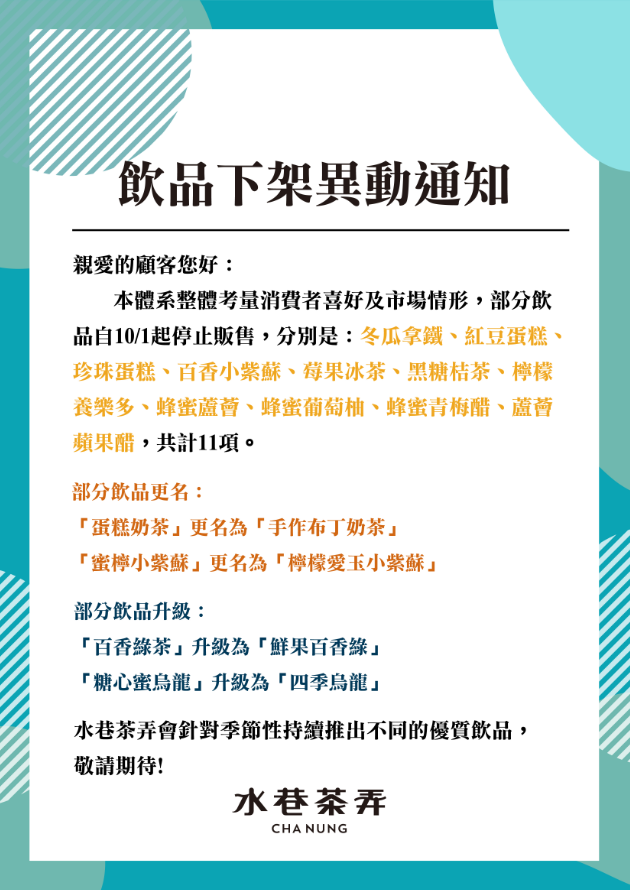 2019年飲品異動下架通知