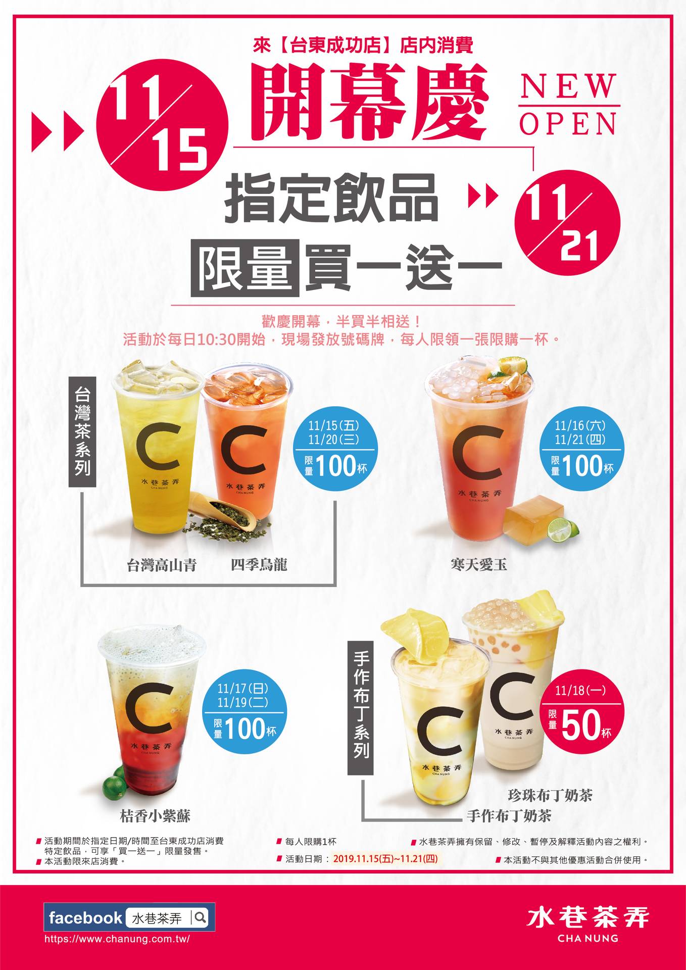 11/15(五)-11/21(四)期間,指定飲品買一送一。